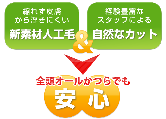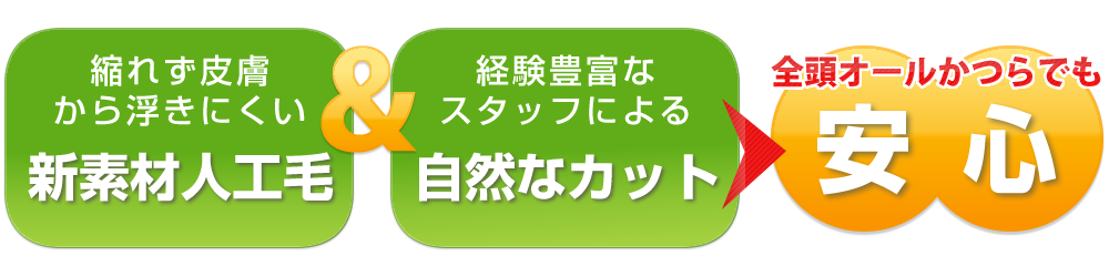 フレンチパートという人工皮膚で本当の地肌と変わりません。