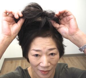 数本の人工毛を決着して髪の毛を増やす